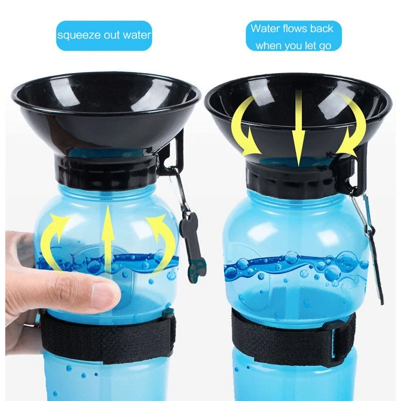 💧 2-in-1 Design: Combines a water bottle and a drinking bowl in one. Just squeeze to fill the top bowl, and let your dog drink comfortably.