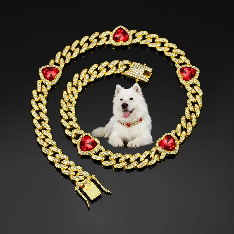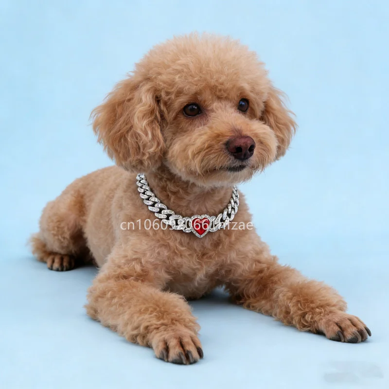 Give your pet a glamorous look with the Luxury Heart Crystal Stone Dog Collar. Designed with sparkling heart crystals and a stylish gold chain, this fashionable collar turns your pet into a true style icon. The collar combines luxury design, comfort, and durability, making it perfect for small dogs and puppies.